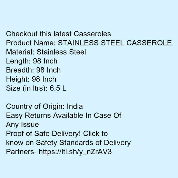 Product Name: *STAINLESS STEEL CASSEROLE*